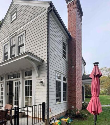 After: A clean one-pipe radon mitigation system professionally installed, preserving the integrity of the home while lowering radon risk. Another historic home brought up to health standards!