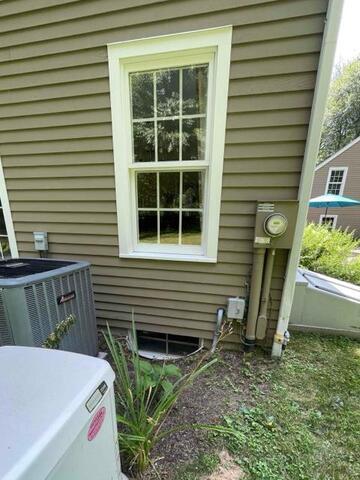After: A radon mitigation system was installed near the AC unit with an exterior cover, effectively reducing radon levels within the home, while the homeowner completed the transaction by leaving a check for pickup.